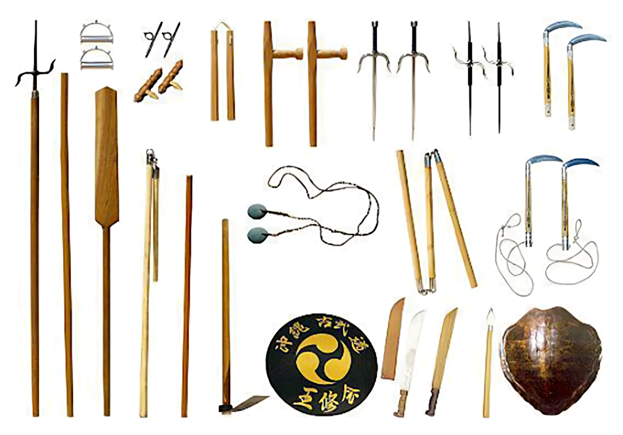 Kobudo oznacza „starą wojenną drogę”. Nazwa ta jest obecnie stosowana w odniesieniu do systemów i szkół nauczających posługiwania się prostymi narzędziami użytku codziennego. Do najczęściej praktykowanych dyscyplin należą: Bo jutsu (sztuka Kija), Tunkua jutsu (sztuka Pałki), Sai jutsu (sztuka Trójzębu) oraz Nunchaku jutsu (sztuka Cepa)